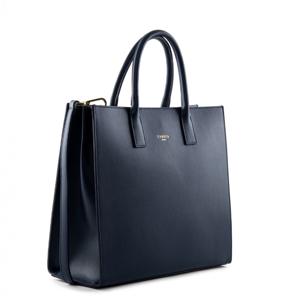 ダークブルーのシックなカラーでオフィススタイルに合わせやすいバッグです。