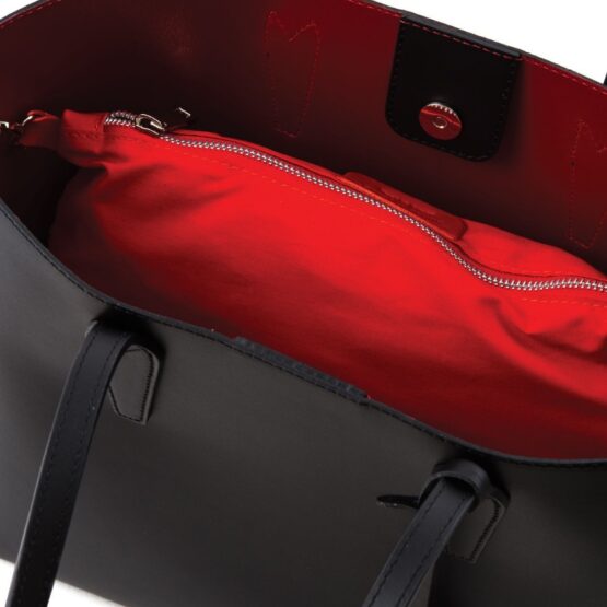 ブラックと赤の組み合わせがシンプルデザインでありながらお洒落なトートバッグです。